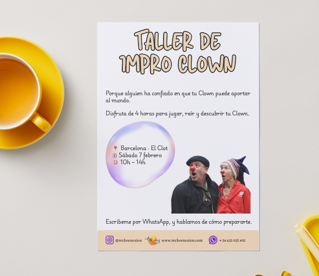 Si el participante informa de su ausencia con al menos 3 días de antelación de la fecha del taller, Reclownexion permitirá guardar la reserva para otro taller, según disponibilidad. Consulta nuestras condiciones de contratación y política de cancelación.